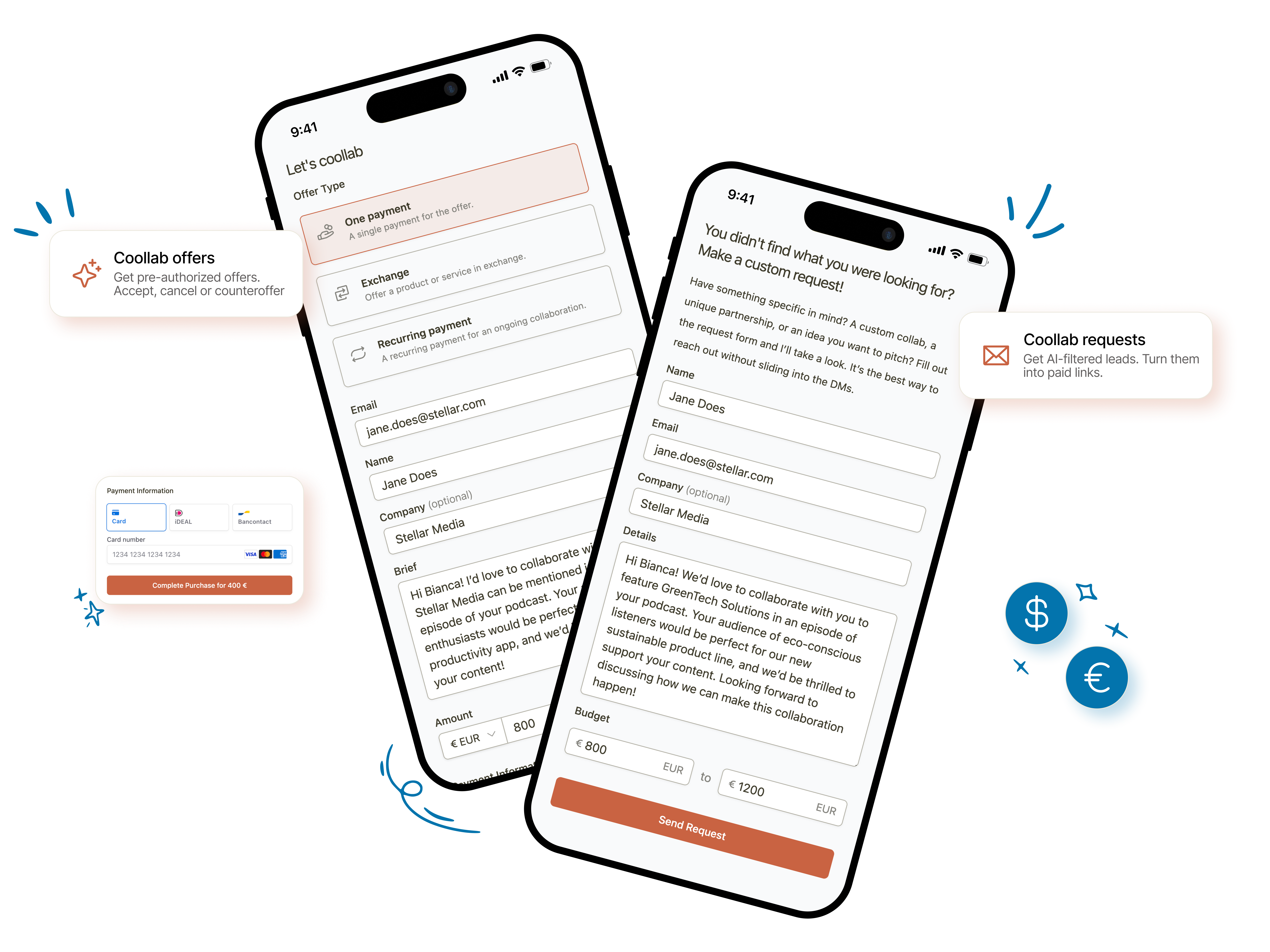 Coollab makes collaboration simple with one link for paid offers and one for filtered requests so you only spend time on serious clients and can focus on the work that really matters.
